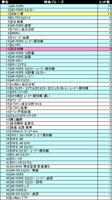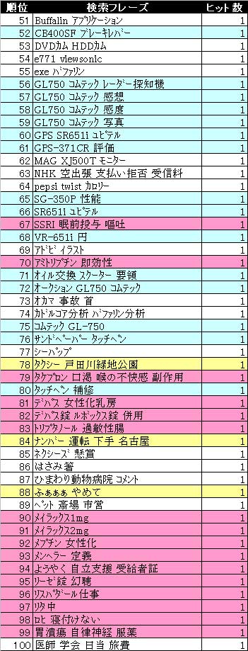 と言うわけで…ここ4ヶ月の検索フレーズを抽出してみました。左から1~50位・51~100位・101位~です。